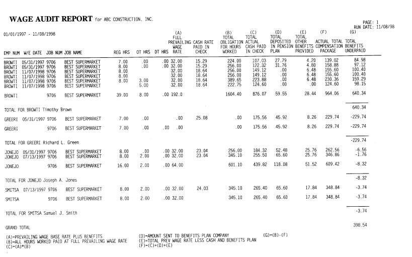 PREVAILING WAGE AUDIT REPORTS