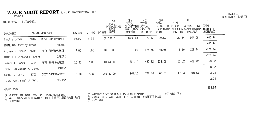 If you are audited on a prevailing wage jobs, these reports show how you have met your obligation for each employee on each job. You may print a detailed or summary report.