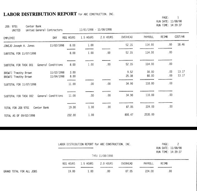 LABOR DISTRIBUTION REPORTS