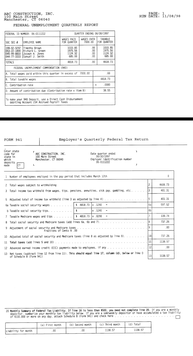 This is a set of reports used to complete your payroll quarterlies. They include 940, 941, state withholding and state unemployment. In addition, the tax liability report prints to show you your liability each week followed by the taxes paid report showing you what deposits have been made.