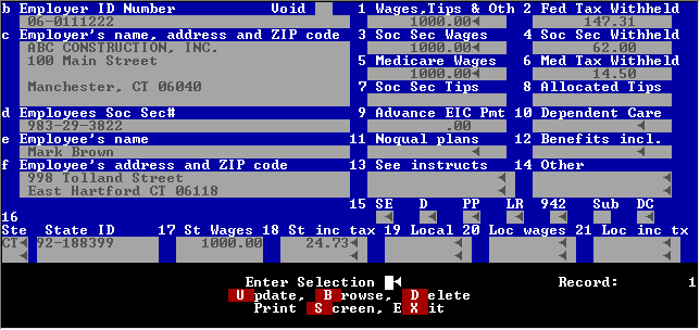 You may look at the W-2’s before they are printed and modify some of the fields before printing.