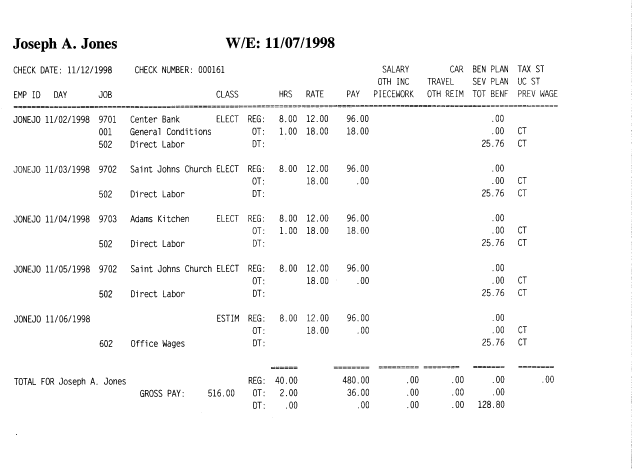 If you wish to show your employees what rate they were paid on each job during the week, you can print this report and include in their pay envelope.