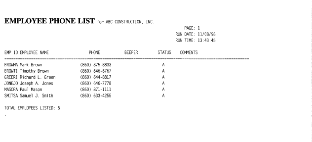PRINT PHONE LIST