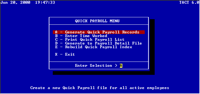 Q-Quick Payroll Menu