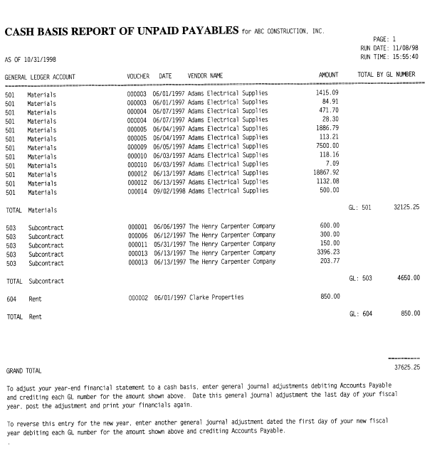 PRINT CASH BASIS PAYABLES REPORT