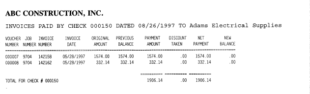 When you pay more than 10 invoices with one check, you will want to print this report to show a list of all invoices paid by a particular check number.