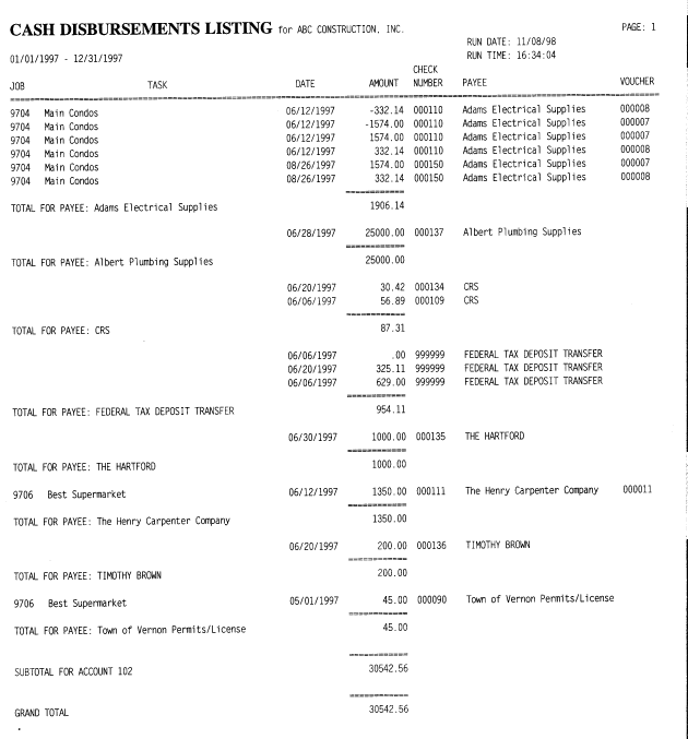 PRINT DISBURSEMENTS FOR ALL ACCOUNTS