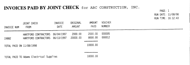 This report allows you to choose one vendor and prints all the direct disbursements to that vendor.