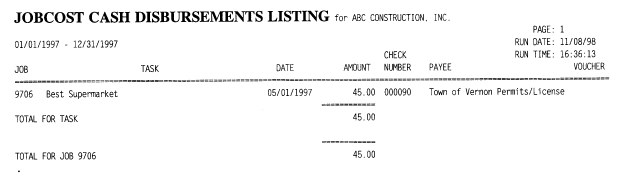PRINT CASH DISBUREMENTS FOR A JOB