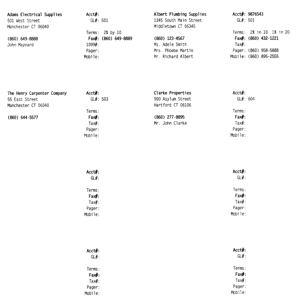 TACT can print both dot matrix and laser rolodex cards for all vendors.