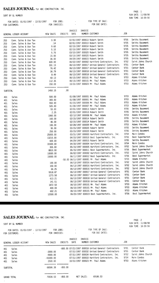 You can print a report for invoices dated between two dates showing the GL distribution by invoice or a report breaking down the invoices by GL number and showing the totals for each GL number.