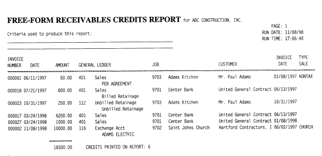 PRINT FREE-FORM CREDITS REPORT