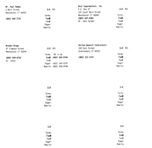 This selection will print dot matrix or laser rolodex cards for just those customers that have been added or marked to print since the last time cards were printed.