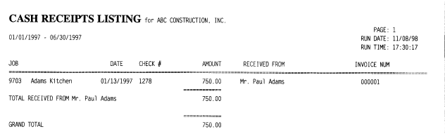 This report allows you to choose one customer and prints all the receipts from that customer.