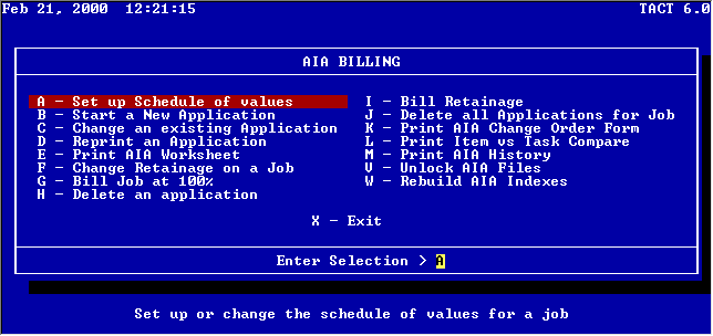 TACT includes a complete AIA billing system that is fully integrated with A/R and Jobcost. TACT provides both amount and percent billing and also allows for units billing.