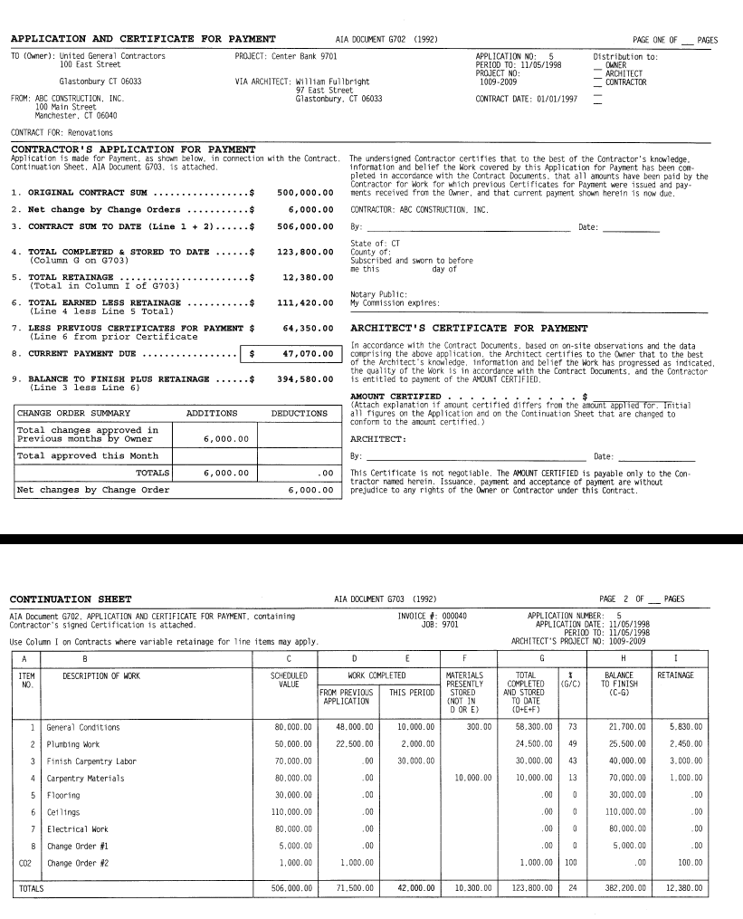 The AIA G702 and G703 are then printed and the invoice(s) generated in A/R.