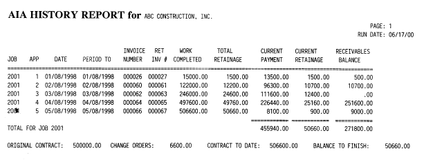 This report shows all applications for a job or range of jobs including their status in A/R.