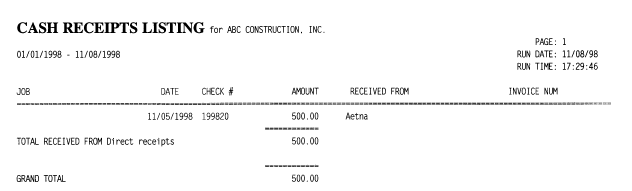 PRINT CASH RECEIPTS FOR ONE ACCT