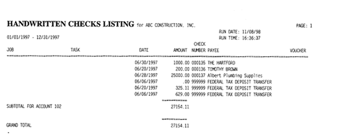 This report shows only items that were entered through Handwritten Checks between any two dates.