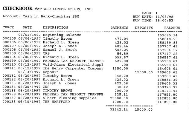 Use this selection to print a checkbook report for a period that is already posted to the General Ledger.