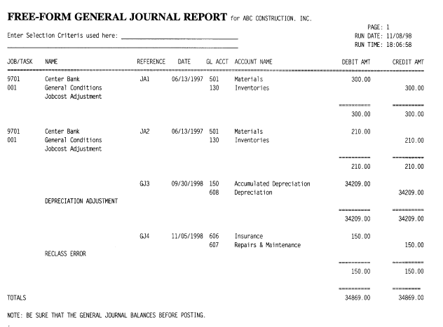 PRINT FREE-FORM GENERAL JOURNAL
