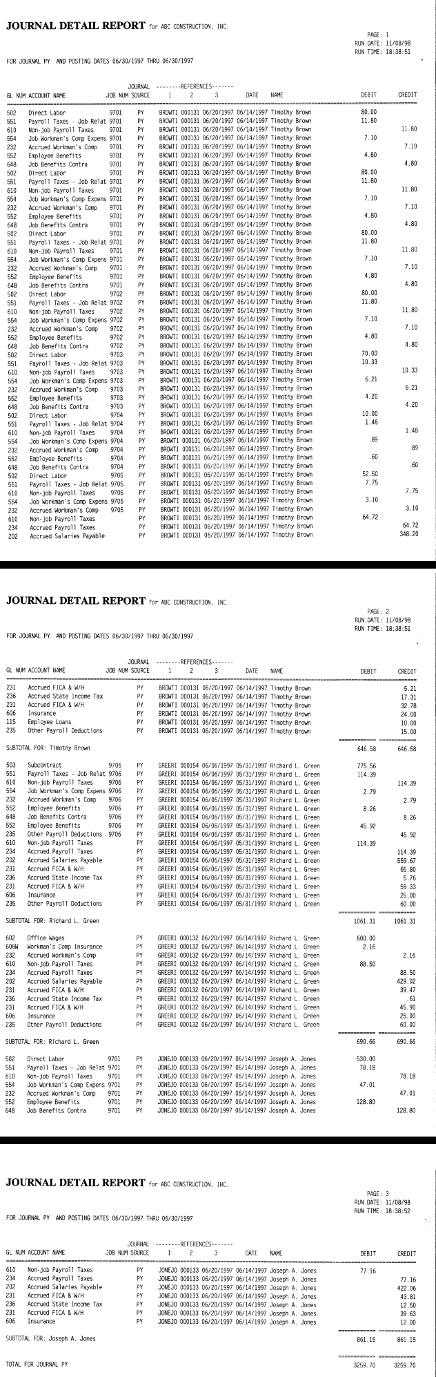 This report prints every debit and credit between two dates for any individual journal.