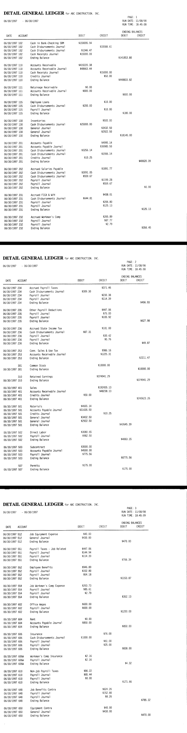 This report can be printed for any range of dates currently stored in the GL file and shows the total change from each journal for each account between those dates.