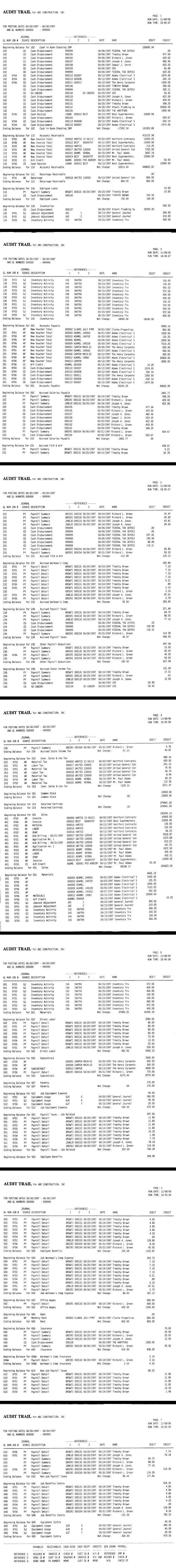 This report is a complete detail of any range of accounts for any range of dates and shows every debit and credit for each account.