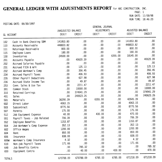 This report shows the Trial Balance before GJ entries, the total of GJ adjustments and the net result for any posting period.