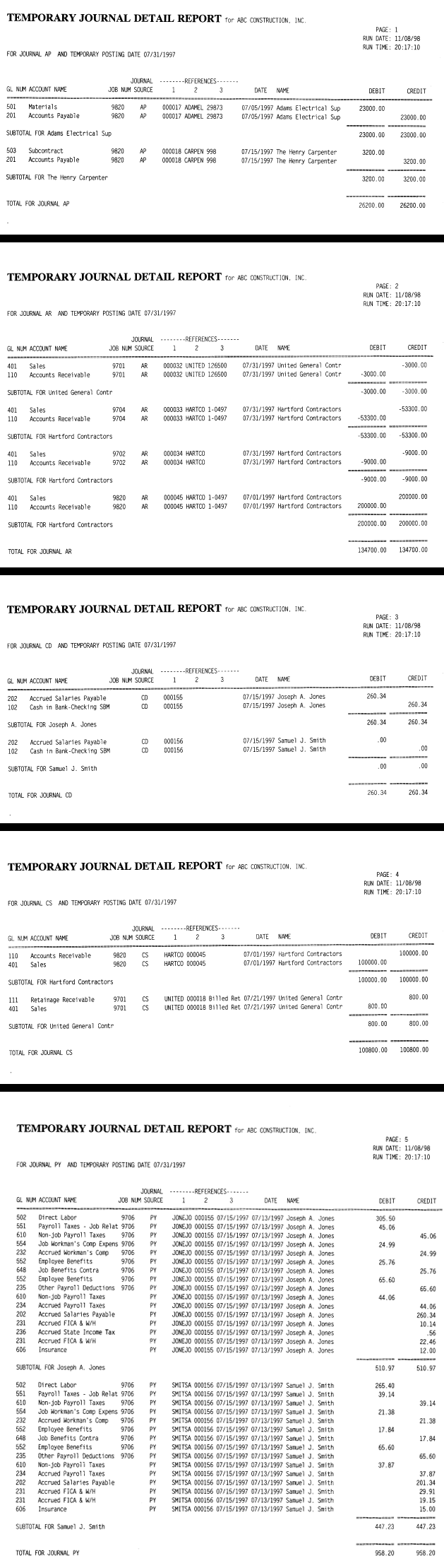 This report shows the detailed debits and credits for each GL in each temporary journal.