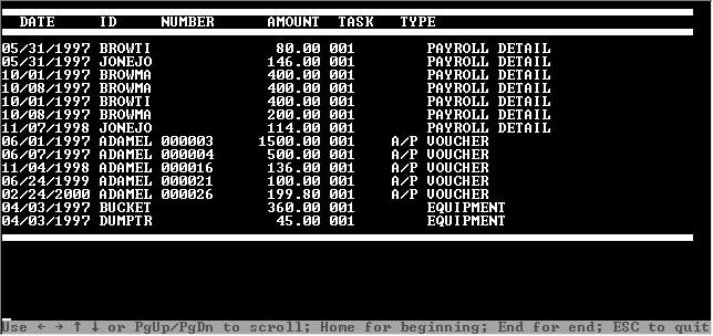 At the touch of a button you can see an immediate history of every transaction for a task. This is just a quick list on the screen. You can also get more detailed reports.