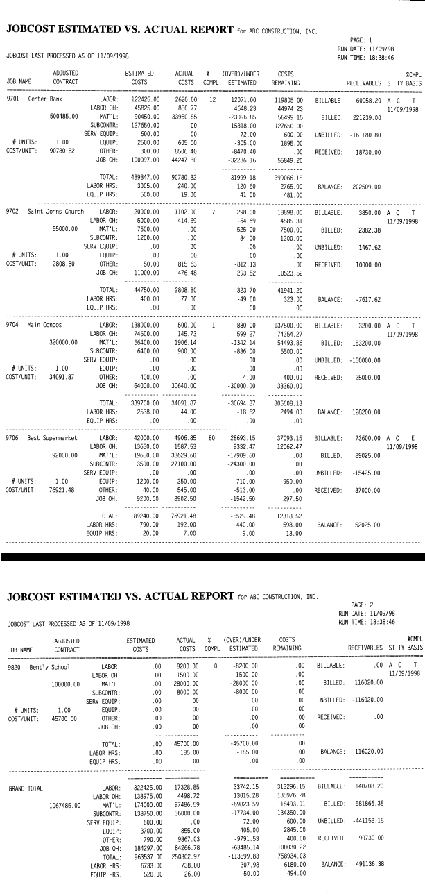 This report can be printed for any jobs and/or tasks and compares the estimated vs actual figures for each category.