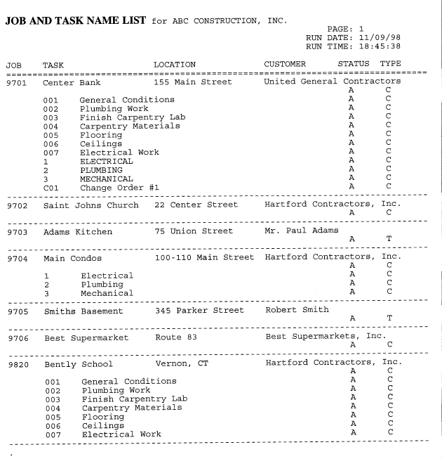 PRINT JOB OR TASK NAME LISTS