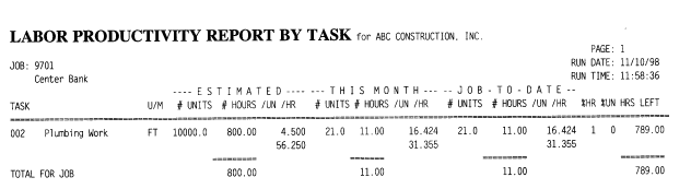 If you keep track of units completed in payroll, this report will show you how much each task costs per unit.