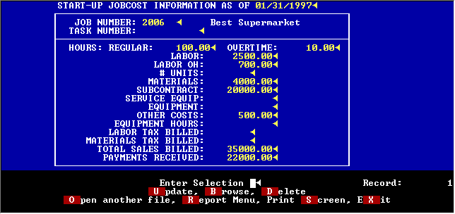 When you first start using TACT, you can enter the jobcost figures from your old system on this screen to be able to see the total jobcost to date in TACT.