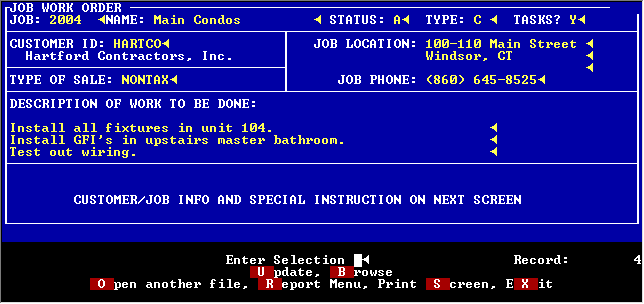 For service calls, you may want to enter a job as a job work order. This allows you to enter information about the work to be done on the job and information about the customer. You can then print a job work order report that the field personnel can use to write in materials and hours used on the call.