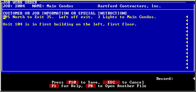Information such as directions to the job can be stored and printed on the work order.
