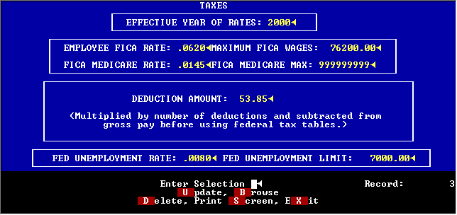 CHANGE FICA AND FED UNEMPL TAXES