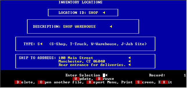 You may establish multiple locations for you inventory including warehouses, trucks and job sites.