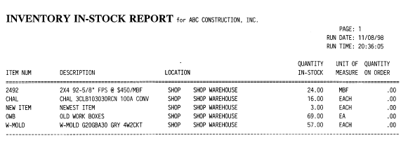 This report allows you to select the items listed by any criteria stored in the inventory file.