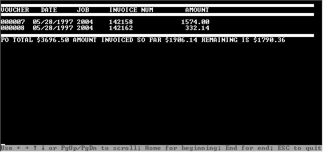 The history of a PO can be displayed with one keystroke showing all the invoices entered against that PO.