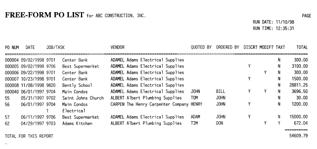 PRINT FREE-FORM PO TOTALS