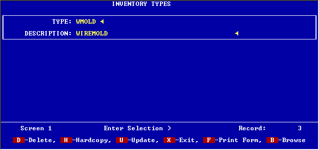 Each type used in your pricing data base may have a description associated with it. When using Trade Service’s Data Select Service, there is a set of standard types that are numbered. You may also add your own such as LABOR.